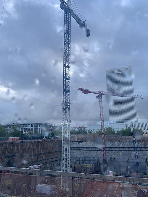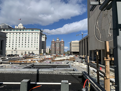 Surrprisingly, the plaza that fills the space between the Church Office Building, Church Administration Building, and the Joseph Smith Memorial building is not yet complete. It is still an active construction zone. New landscaping is being installed on the north and east sides of the Church Office Building tower.