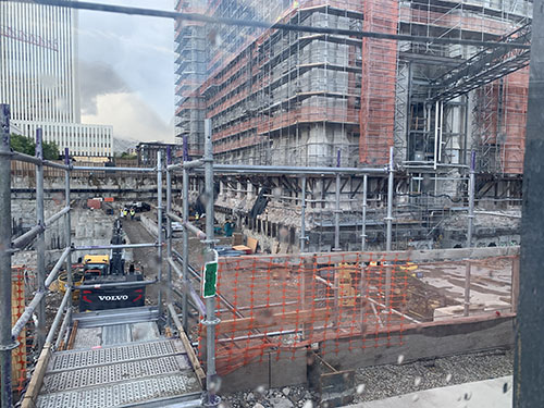 The main street plaza is now closed. Small walkways are provided from the north to the Relief Society building and from the south to the Joseph Smith memorial building. If this lasts through Christmas, there won't be much to "the lights on Temple Square" in 2022.