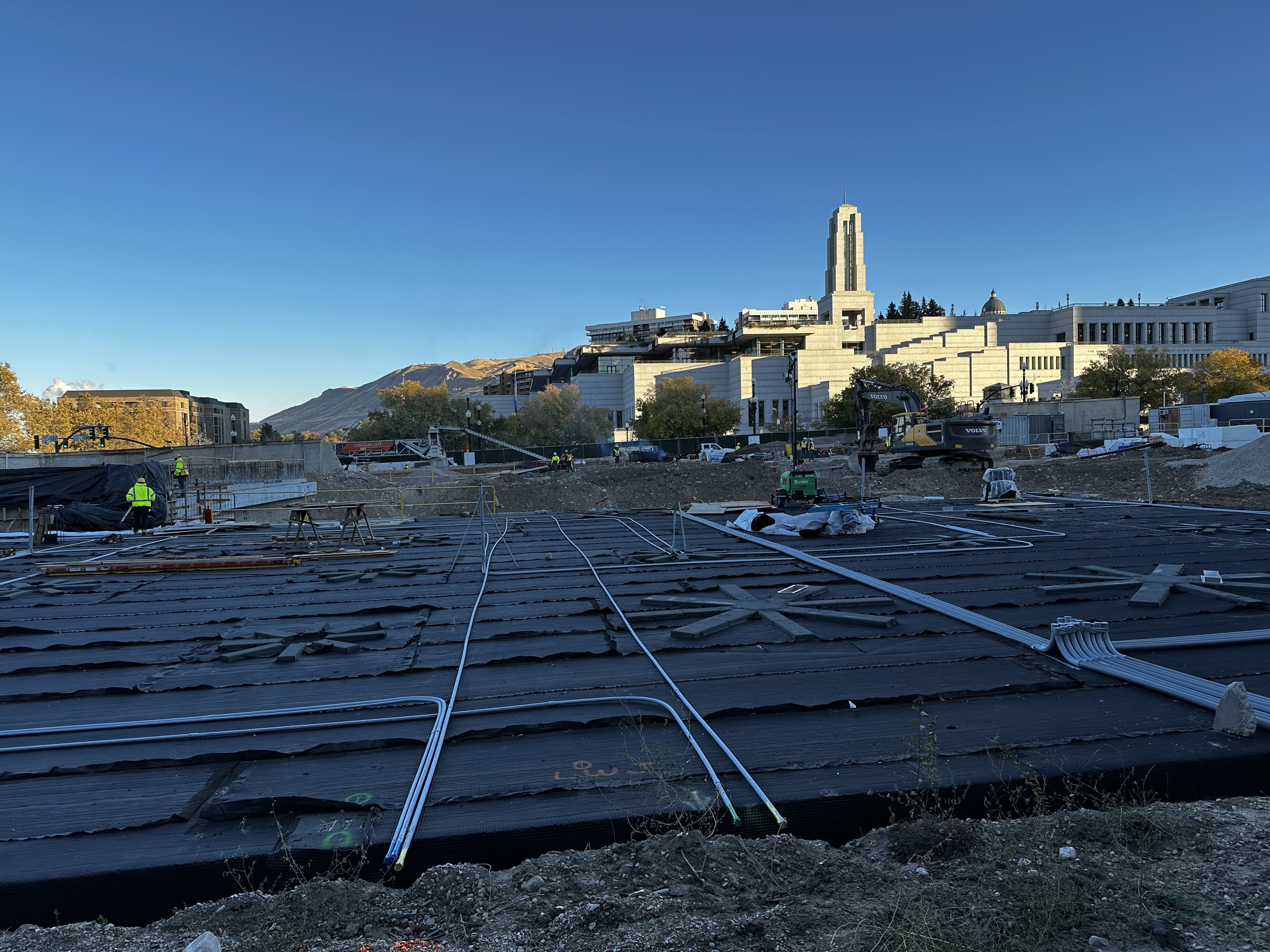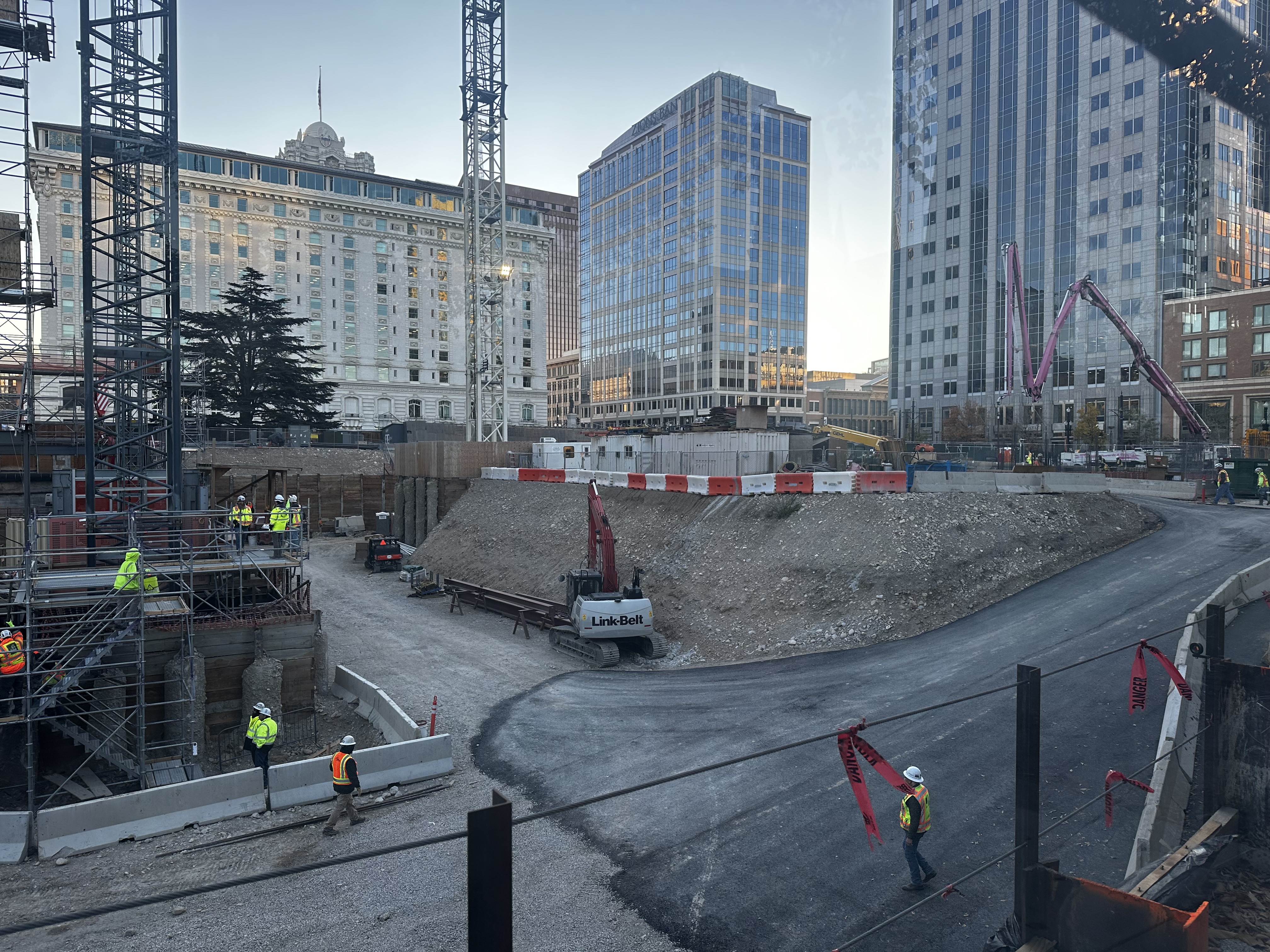 The new visitor center foundation walls are almost complete as it rises from temple square ground level.