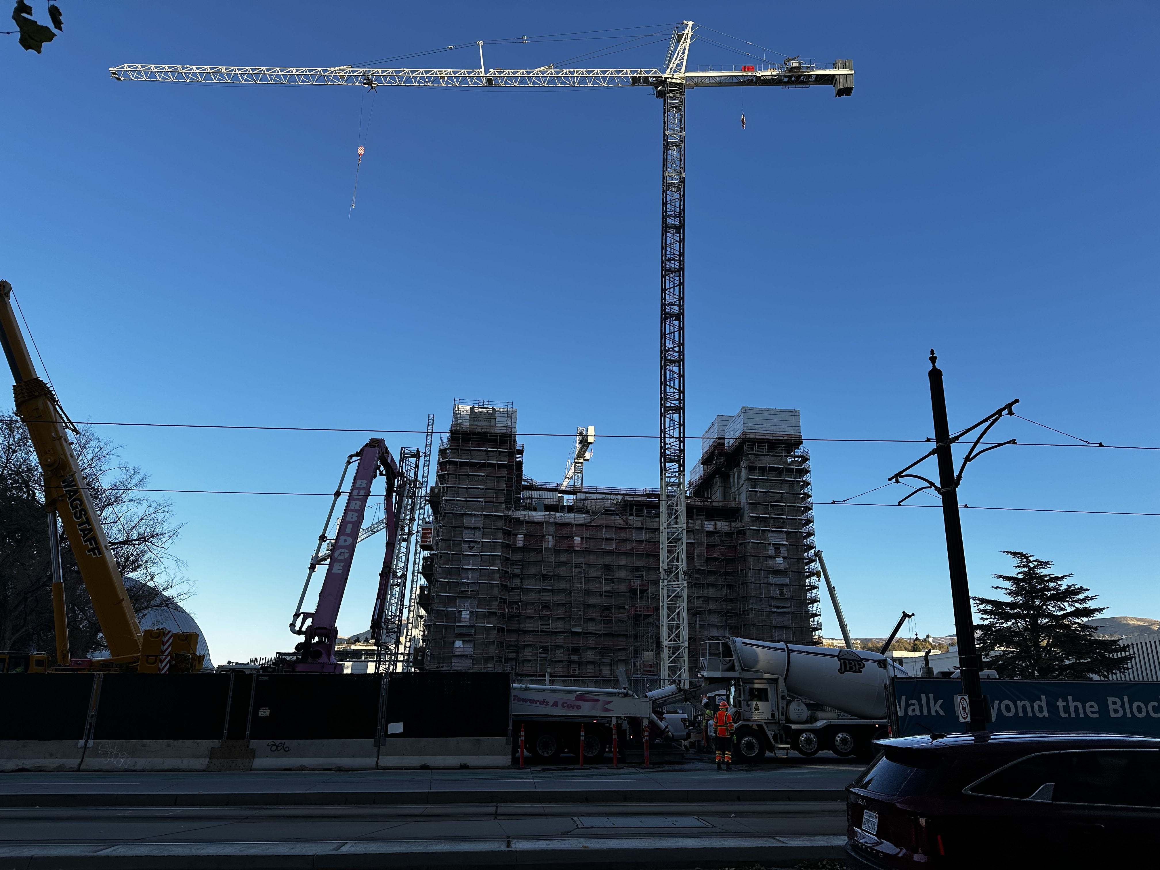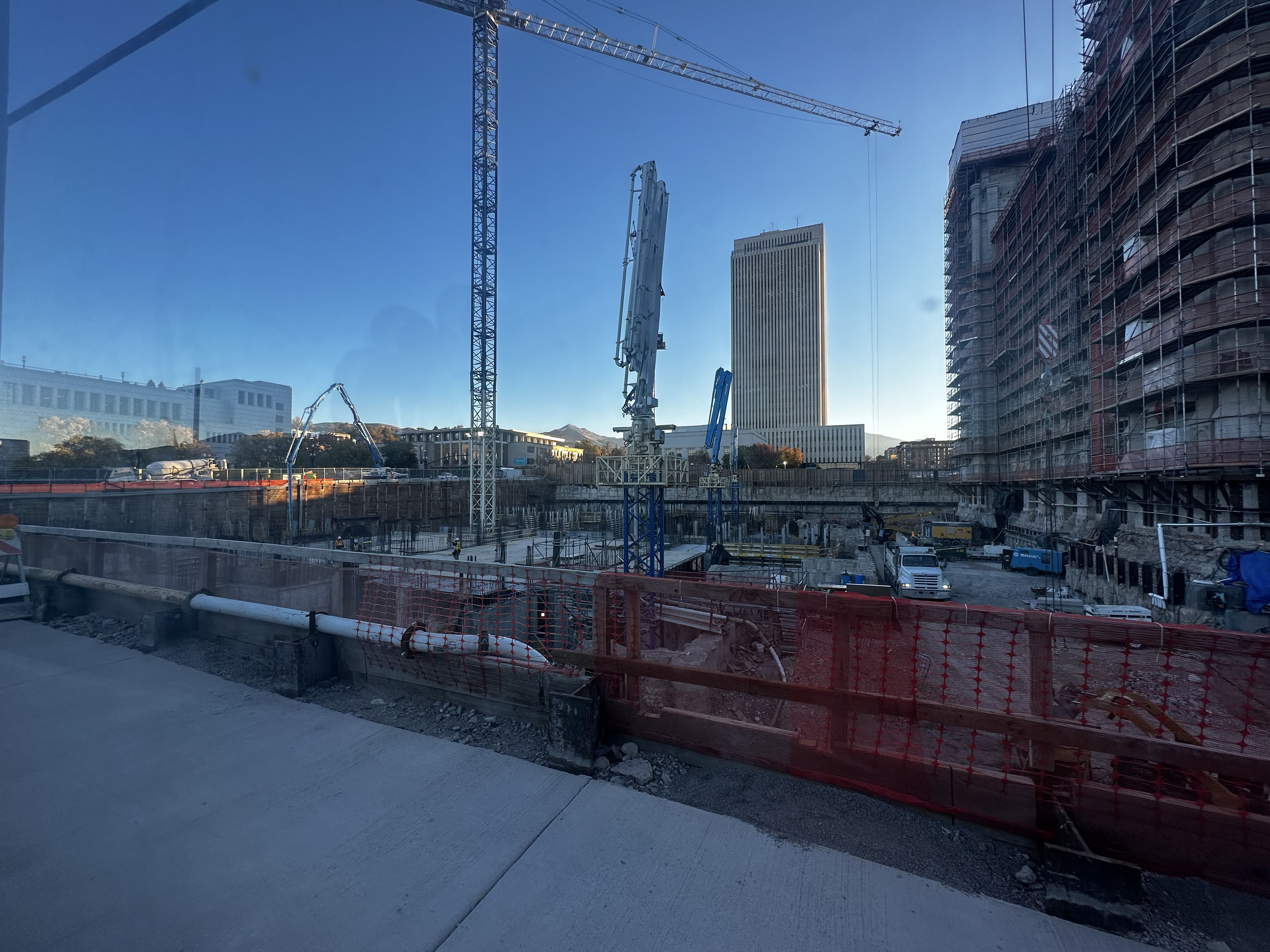 There are now tower cranes galore above Temple Square. This photo was Taken from the southeast corner of North Temple and Main Street.